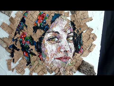 Ritratto di ragazza con fazzoletto di seta, opera realizzata su uno sfondo di tasselli di sughero (corteccia naturale di quercia)tagliata a mano dall'artista ,è dipinto ad olio con l'uso esclusivo della spatola, presenta alcune parti incompiute volutamente per dare la sensazione del “non finito”.
