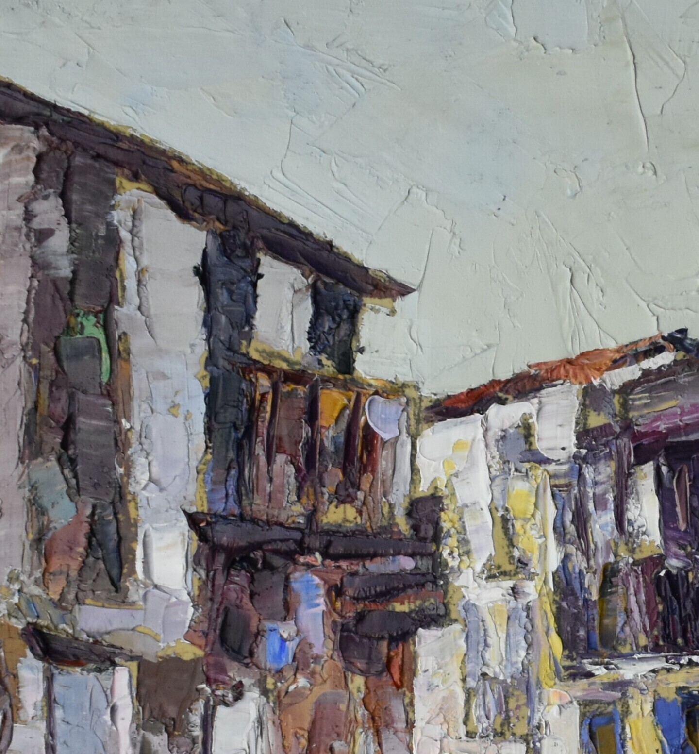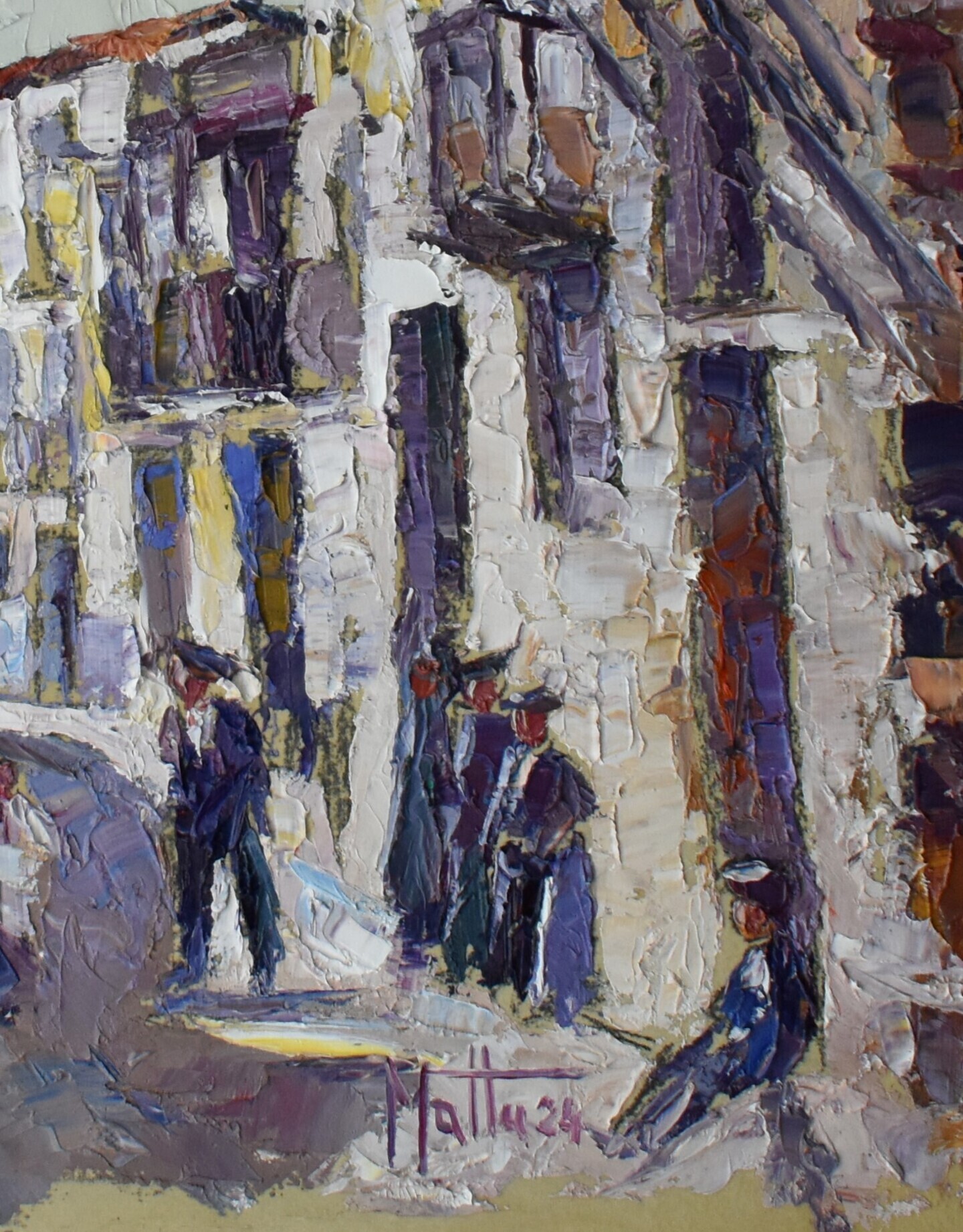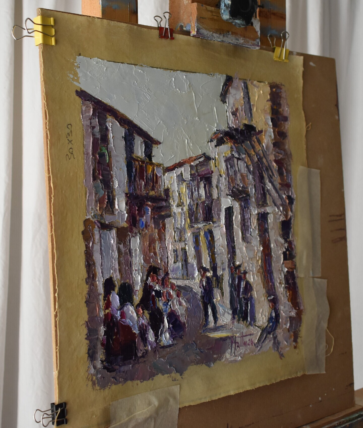 In questa opera ho voluto catturare la vita semplice e autentica di un angolo antico di Fonni, usando spatolate dense e colori caldi per trasmettere l’atmosfera vibrante e piena di storie. Ogni volto e dettaglio racconta emozioni di comunità e tradizione, portando energia positiva e un senso di appartenenza in qualsiasi ambiente. È un omaggio al passato che continua a vivere nel presente.