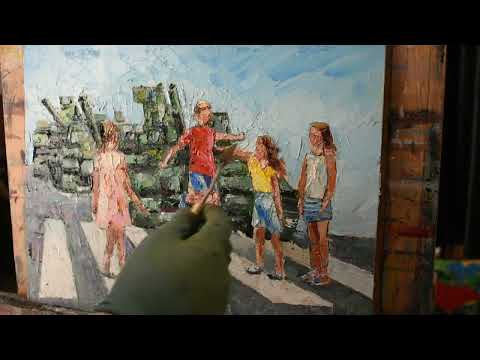 L'artista nell'opera tratta il tema della guerra, che è sempre attuale, il popolo ne subisce le conseguenze peggiori, per qui si cercano tanti modi per ripudiarla. Nell'immagine utopica i bambini giocano al salto con corda sulle strisce pedonali incuranti della colonna di carri armati che entrati in città e si fermano davanti al gruppo, gli stessi continuando come se nulla fosse ad impedire il passaggio. La metafora è “fermare la guerra non è un gioco da bambini”.