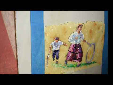 In questa opera l'artista è ispirato dal ricordo dei giochi d'altri tempi in cui i bimbi si divertivano a gareggiare e mostrare la propria abilita con giocatoli semplici come i cerchi ricavati da materiali di recupero.