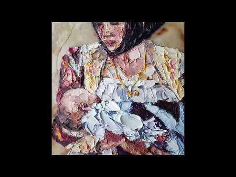 Ho creato quest'opera ad olio spatolato su un foglio di pane carasau dedicata a tutte le mamme,
