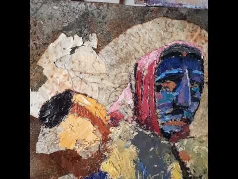 La maschera facciale del mamuthone è nera di legno, il corpo è coperto da pelli di pecora nera mentre sulla schiena è sistemata una serie grossi di campanacci . Questa figura mi ha ispirato artisticamente a realizzare l'opera ad olio spatolato su materiali non usuali in pittura come il pane carasau resina e lamiera in acciaio riciclata.