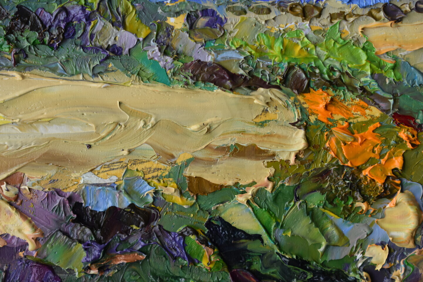 Una veduta particolare un invito a contemplare e apprezzare i momenti effimeri della natura. Ogni spatolata e colore scelto evocano sentimenti di pace e ammirazione per il mondo che ci circonda, trasformando ogni ambiente in cui si trova questa tela in uno spazio di ispirazione e serenità.